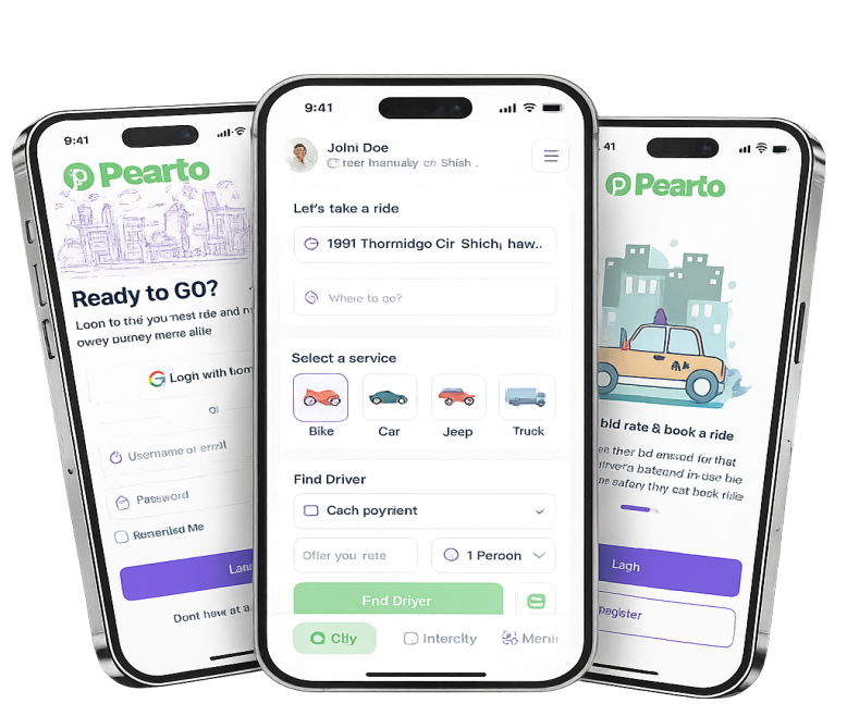 Riders enter their trip details, and drivers submit competitive bids. Riders can compare offers based on price and ratings.